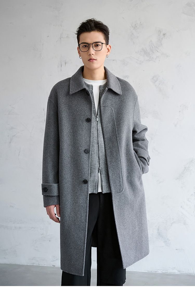 [100 all-wool double-sided woolen coat] Autumn and winter classic Balmacan medium and long coat woolen coat