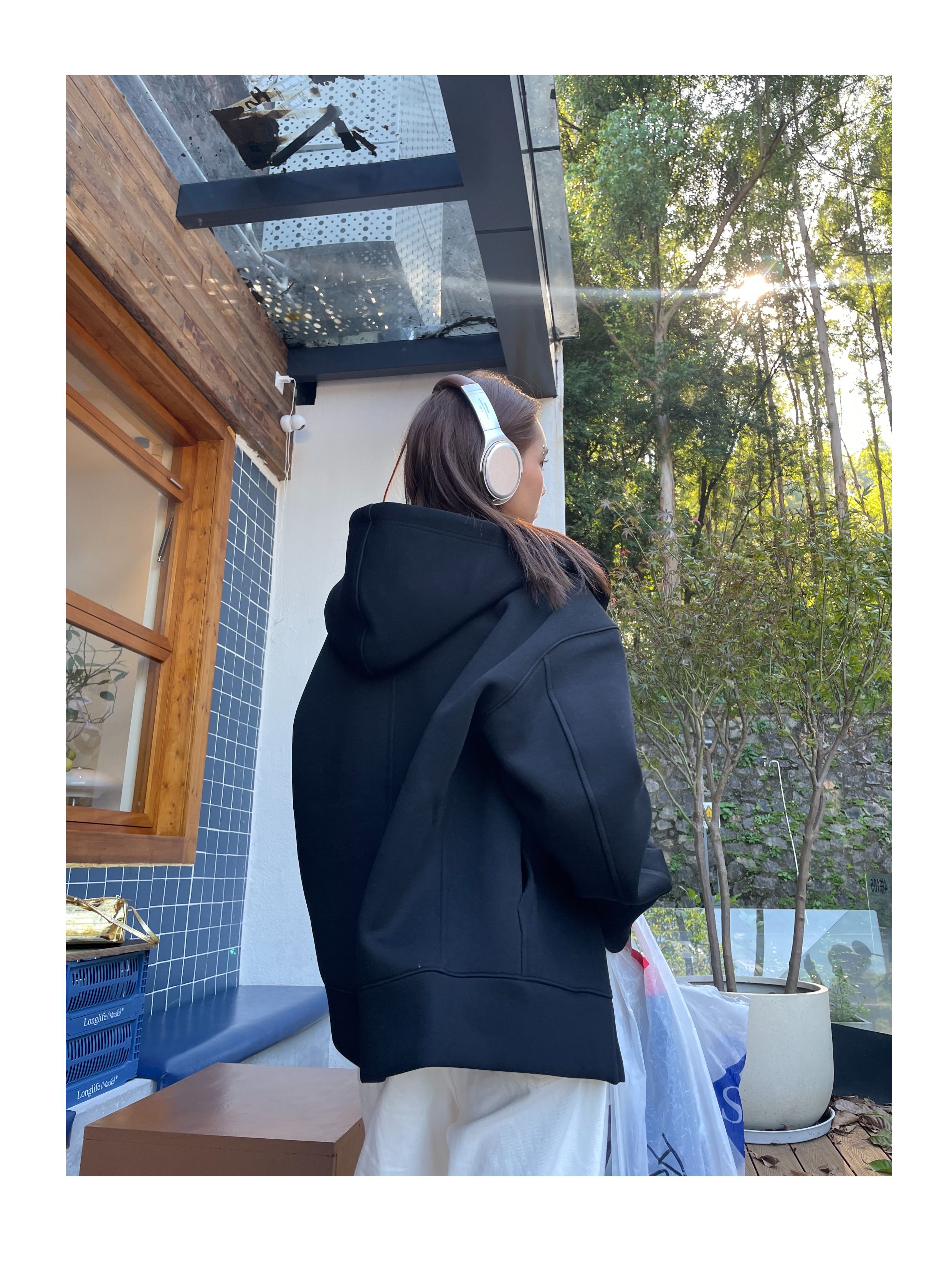 This 520G oversized hooded cardigan channels vintage charm with a distinctly modern sensibility. The substantial weight ensures durability and thermal comfort, while the relaxed fit embodies the effortless "lazy wind" aesthetic that defines contemporary casual wear. Designed for women who prioritize comfort without sacrificing style, the retro-inspired silhouette works equally well as a standalone piece or layering essential. The integrated hood adds functional versatility, making it suitable for unpredictable weather. Perfect for those seeking a wardrobe staple that bridges nostalgia and current trends, this cardigan delivers understated sophistication through its generous proportions and timeless appeal.