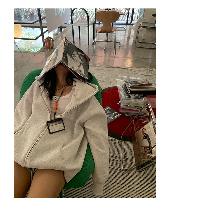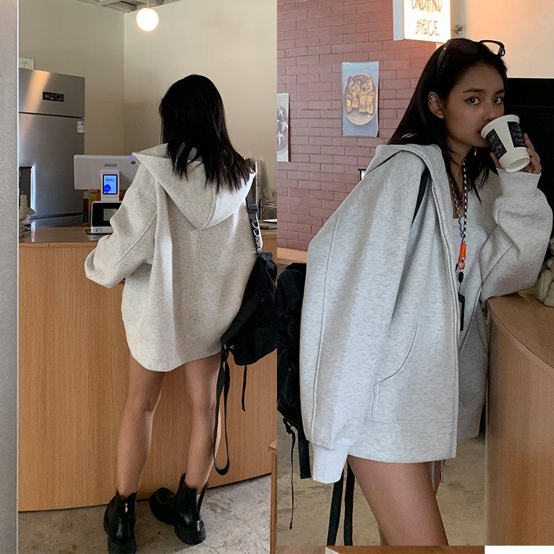 520G retro top jacket oversize cardigan hooded sweater women loose lazy wind