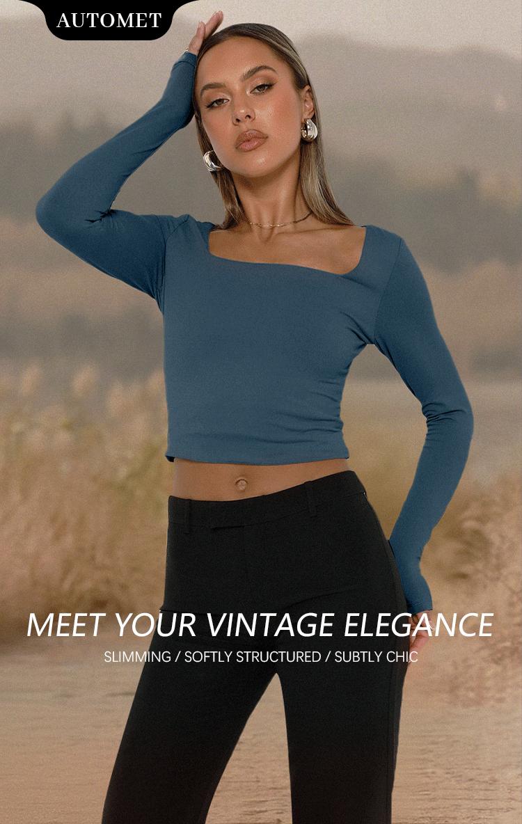 Transform your look with the AUTOMET Women's 3 Pack Long Sleeve Crop Tops. These slim fit shirts are ideal for spring, summer, and autumn. Perfect for casual wear, they boast a Korean style design. The pack comes in haze blue, white, and black. These minimalist tops are excellent for layering.