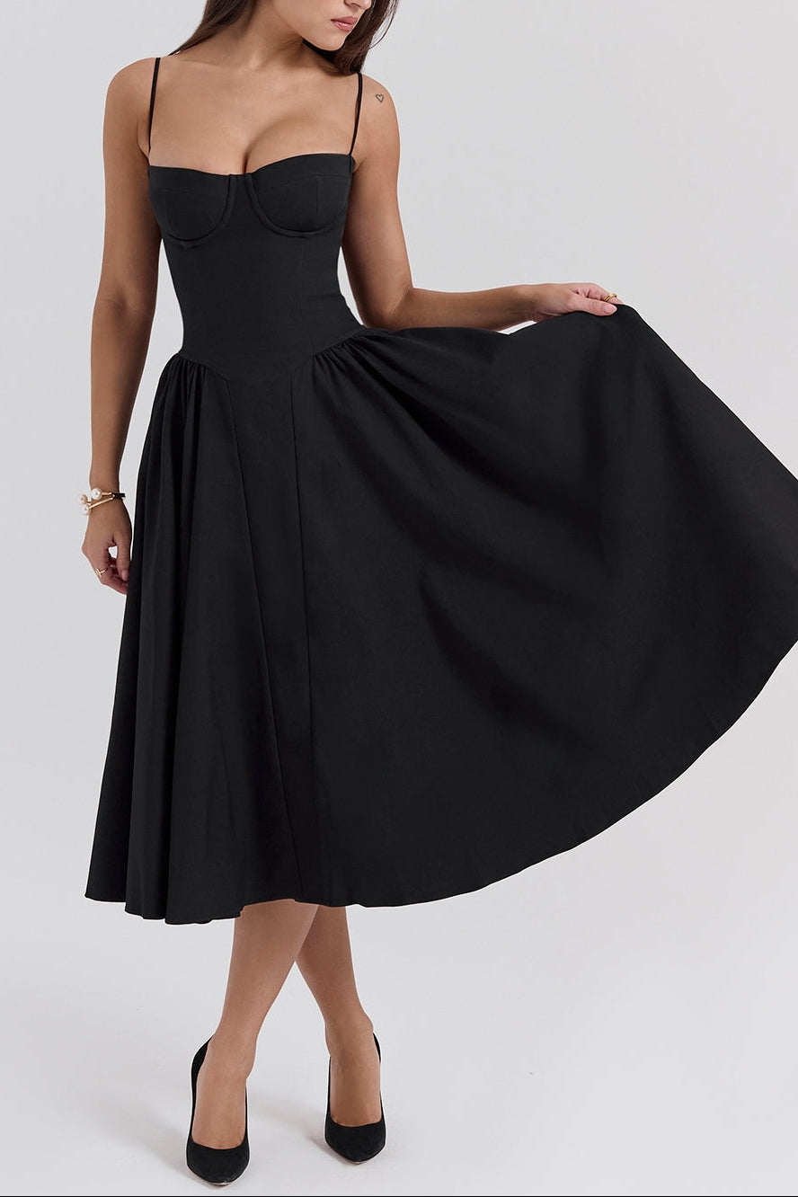 Step into effortless elegance with the midi-length 'Miley Dress'. Crafted from a soft, stretch fabric in a stunning rich wine tone, this dress features a flattering bodice, figure-hugging fit. Cute spaghetti straps add a touch of '90s charm, and the paneled skirt provides soft volume, complete with discreet side pockets. Dress it down with a suede jacket and loafers for cooler weather, or elevate the look with simple heels for evening occasions.