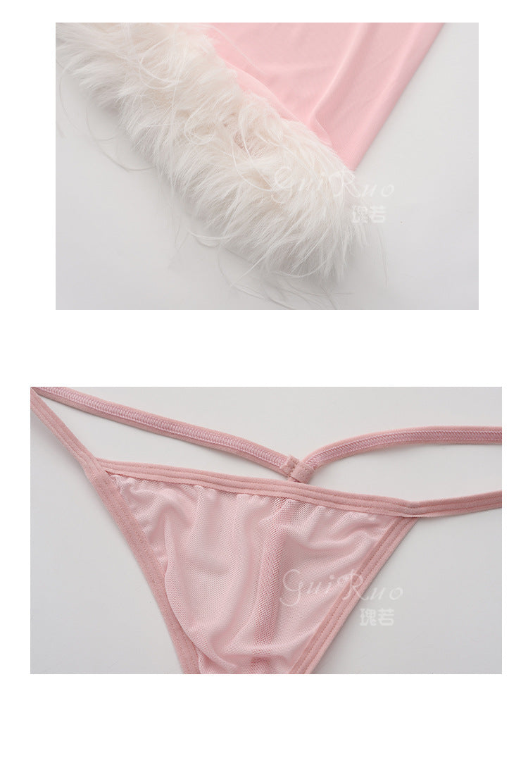 Womens Sexy 3 Piece Fuzzy Lingerie Set Transparent Tulle Nightshirt With Robe and G-String