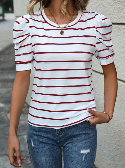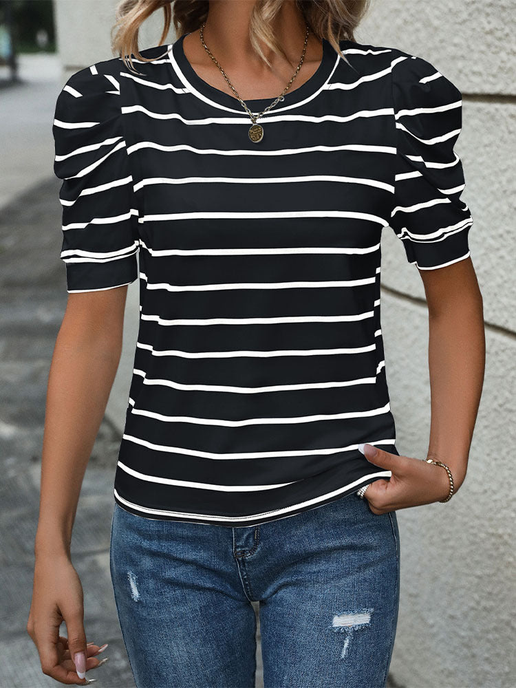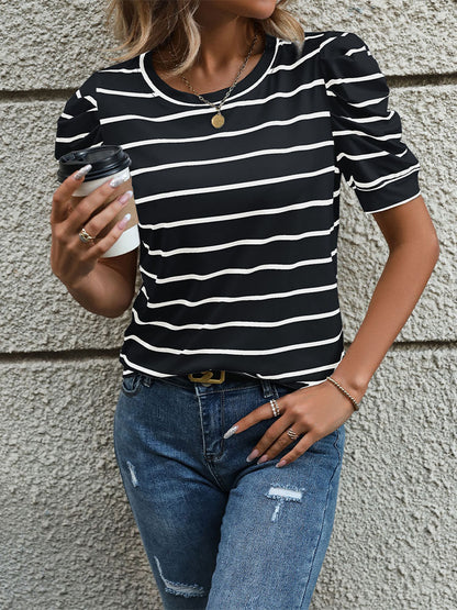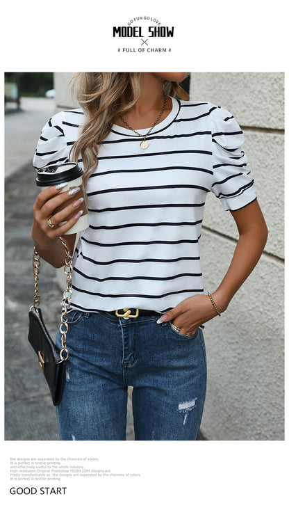 Elevate your casual wardrobe with our Blouse for Women! The comfortable and stylish design features puff short sleeves, a trendy boho print, and a flattering crew neck for a chic look. Perfect for the summer, this top is a must-have for any fashion-forward woman.