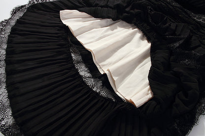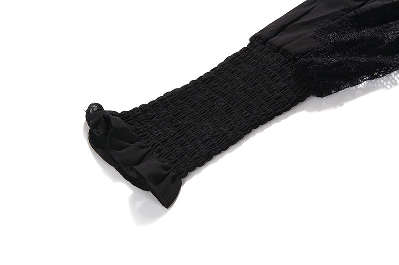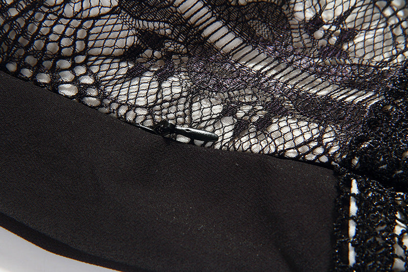 Petra V Neck Lace Midi Dress Elegant Long Sleeve Lace Embroidery Deep V Black Evening Dress