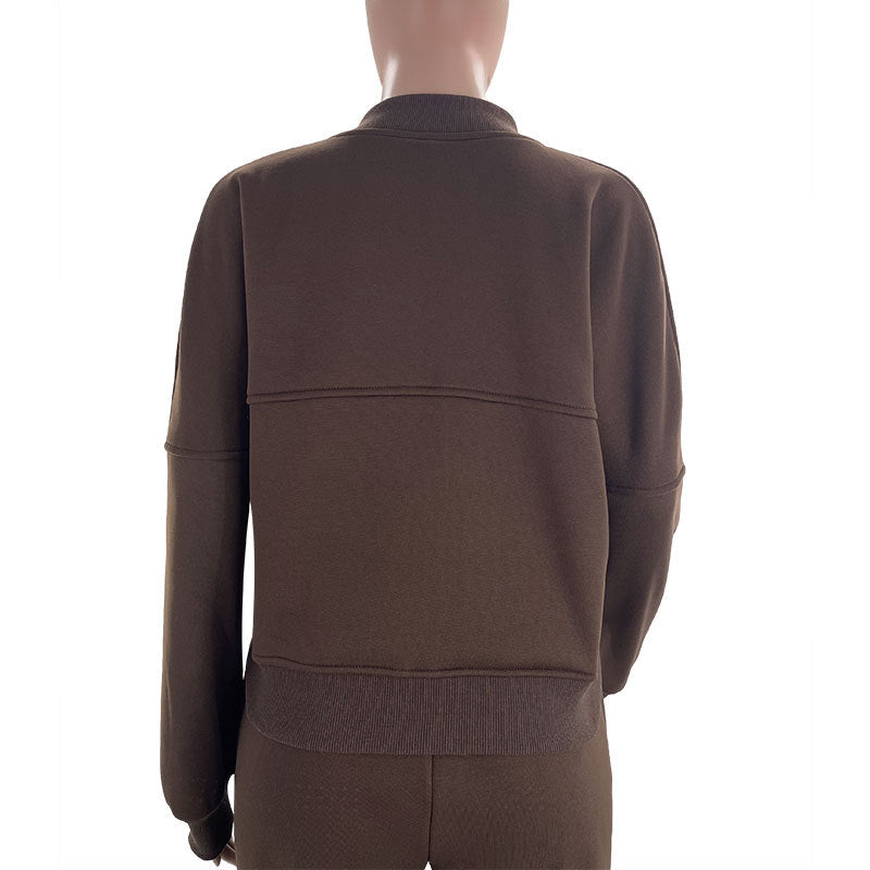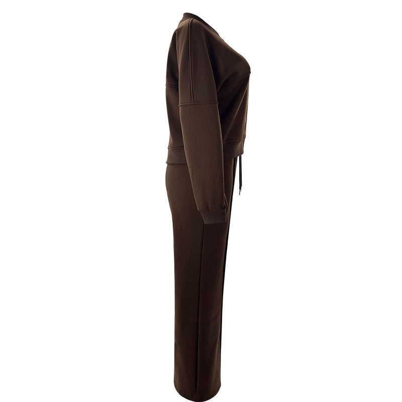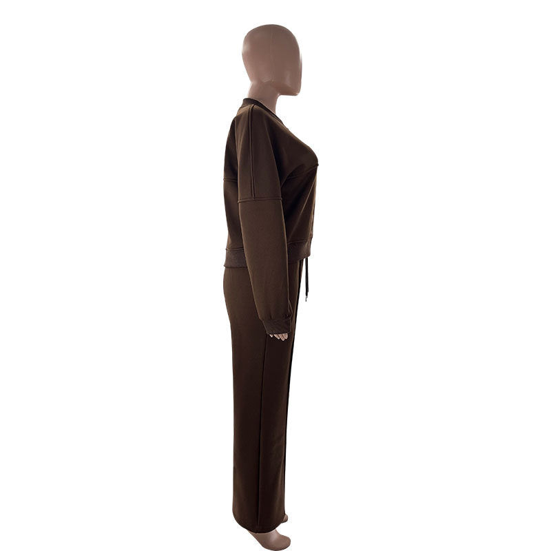 Women's Solid Zip Up Crop Jacket & Drawstring Waist Pants Two-piece Set, Casual Fashion Drop Shoulder Long Sleeve Top & High Waist Trousers Womenswear Suits for Outdoor Wear, Women's Clothing for Spring & Fall 90s Clothes