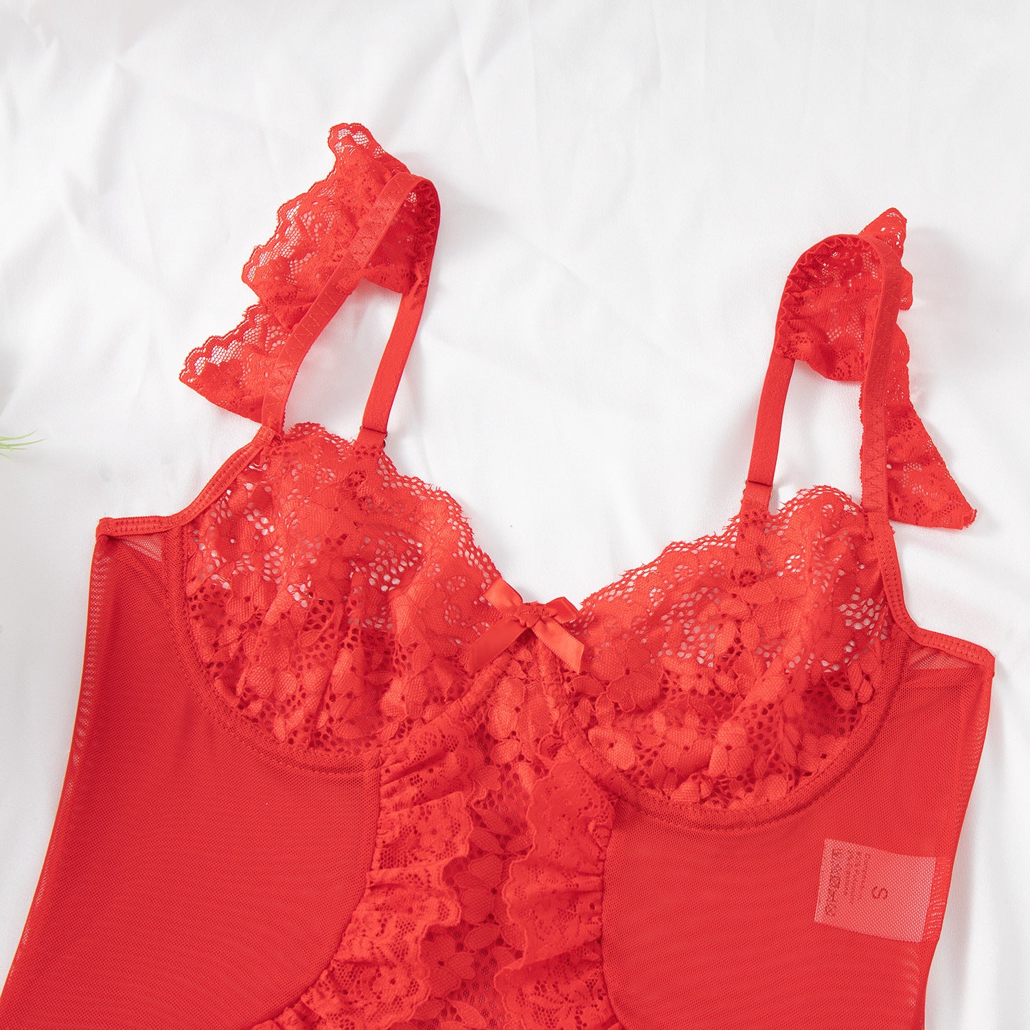 Women Sexy Lingerie Bodysuit Floral Lace Teddy Babydoll Snap Crotch Ruffle One Piece with Thigh Bands